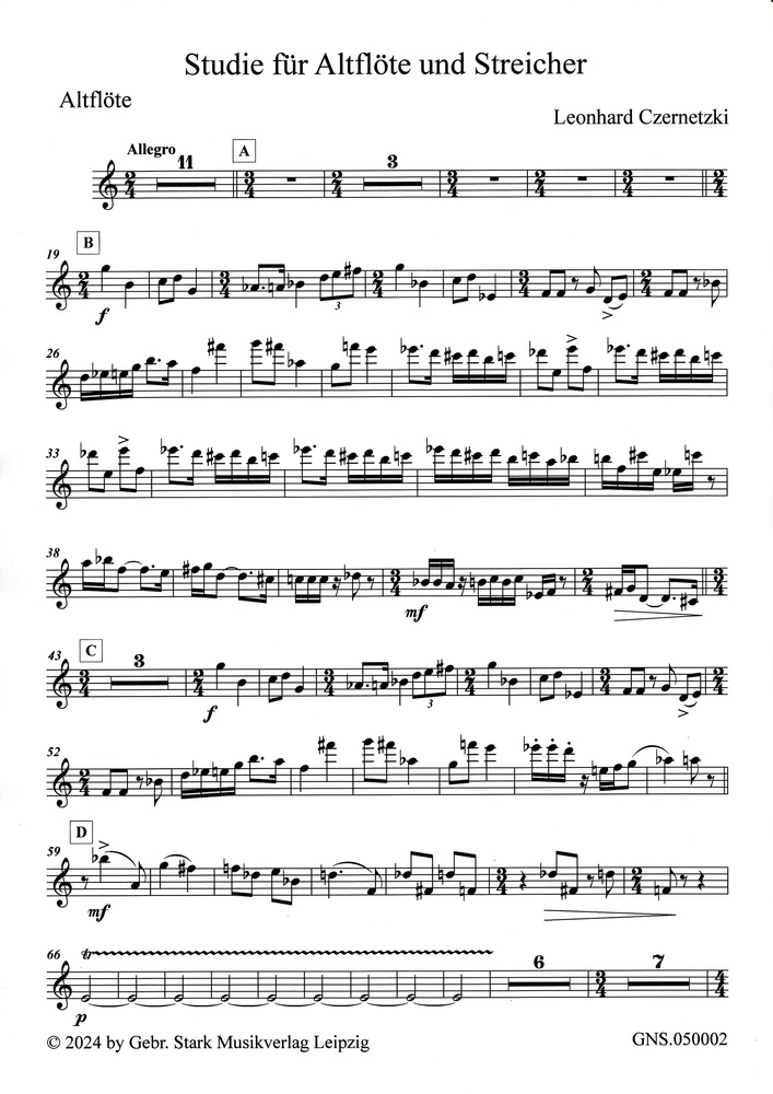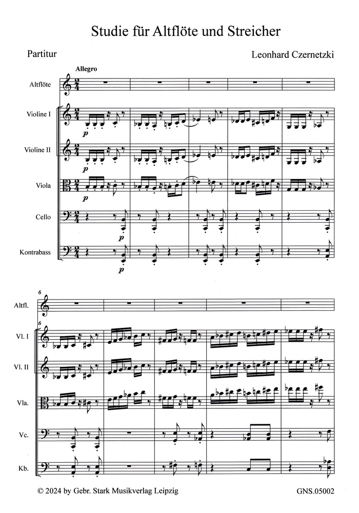 Altflöte und 2 Violinen, Viola, Cello, Bass